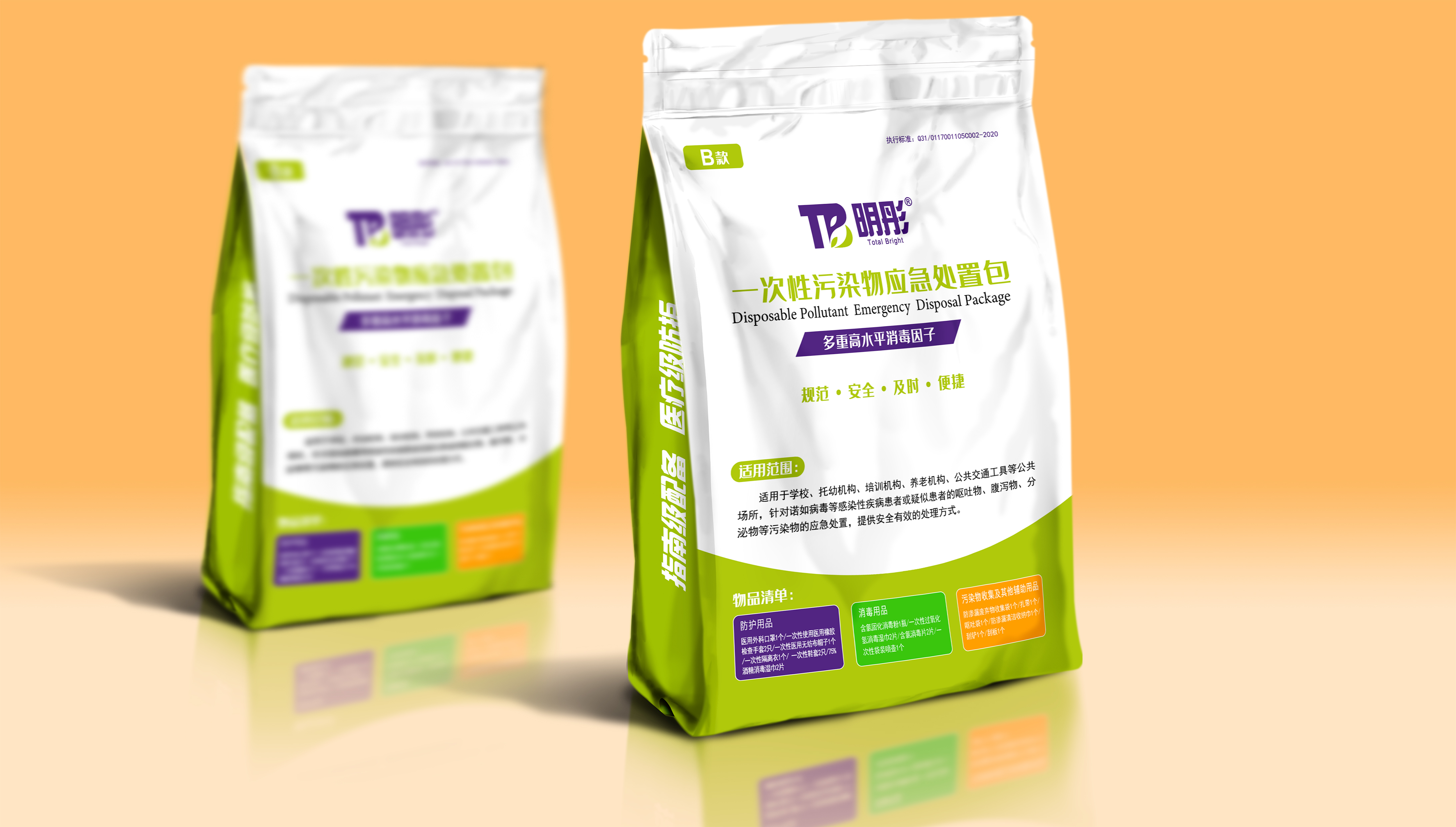 明彤一次性污染物應急處置包,嚴格按照技術規范配備,含有全套滅菌級別個人消毒防護用品,保證操作者不被傳染。可以阻斷諾如病毒感染等校園常見急性傳染病的聚集性傳播。內含消毒用品、防護用品、污染物收集用品。