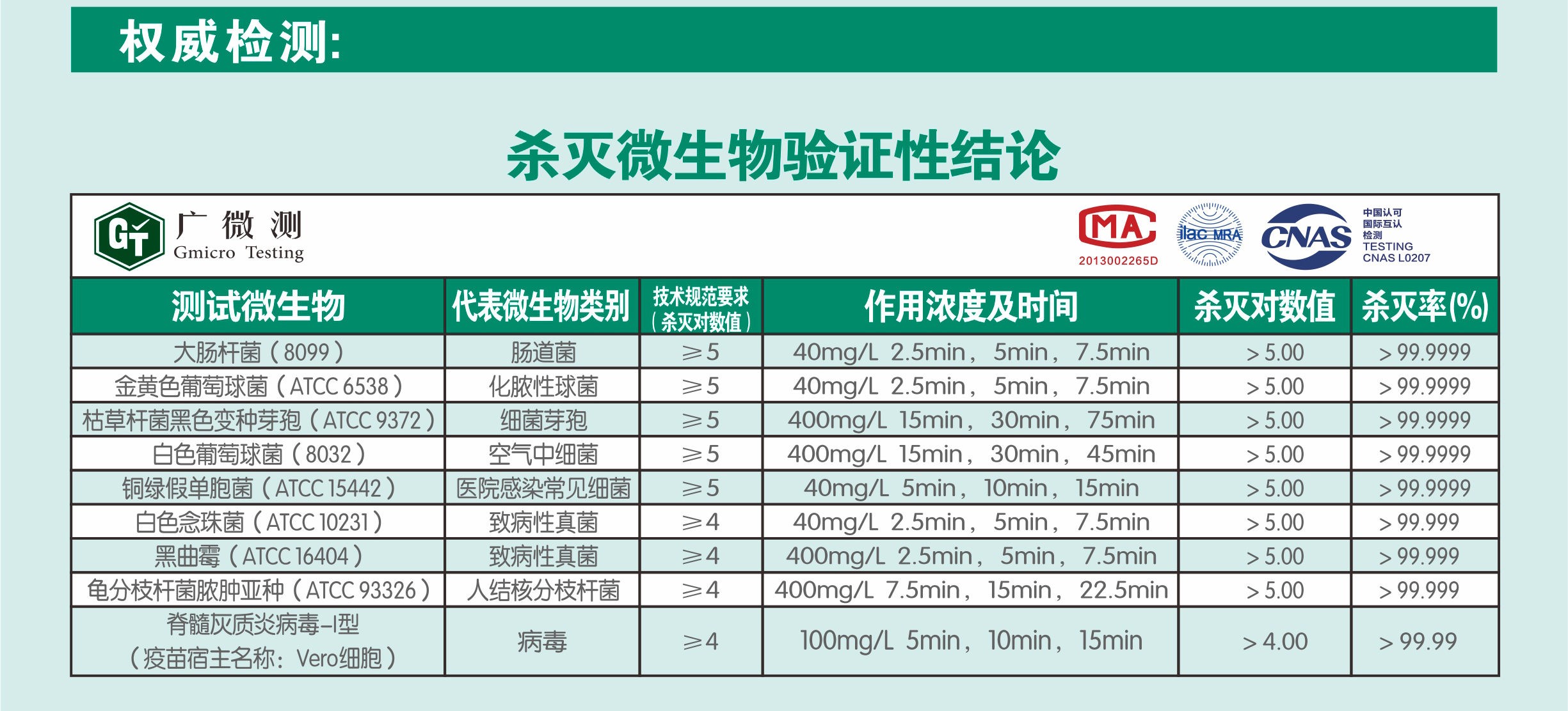 二氧化氯被WHO評價為A1級安全高效消毒劑, 廣譜高效、彌散性好、“無致癌致畸致突變”反應、安全無毒。