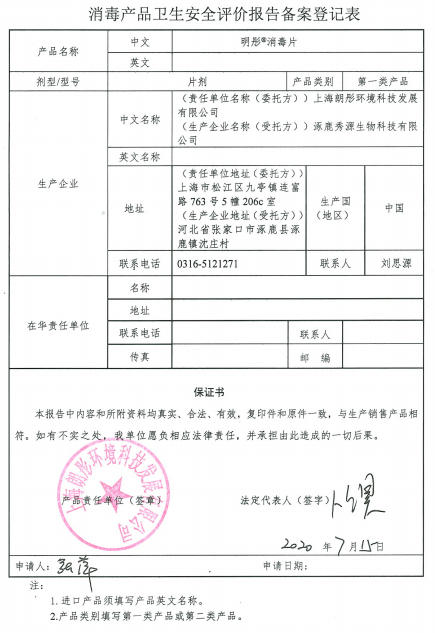 《消毒產(chǎn)品衛(wèi)生安全評(píng)價(jià)規(guī)定》第四條規(guī)定: