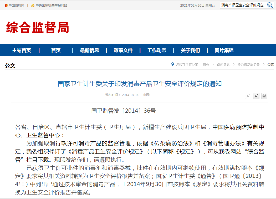 《消毒產(chǎn)品衛(wèi)生安全評(píng)價(jià)規(guī)定》