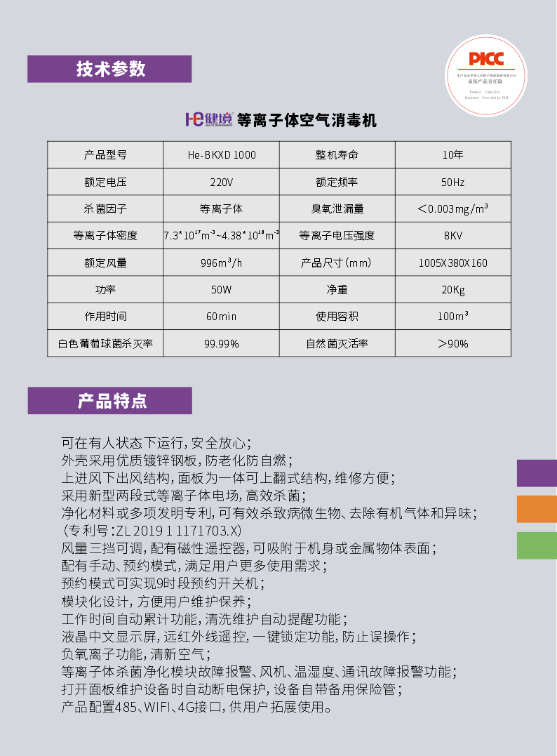健境?He-BKXD1000型等離子體空氣消毒機(壁掛式)