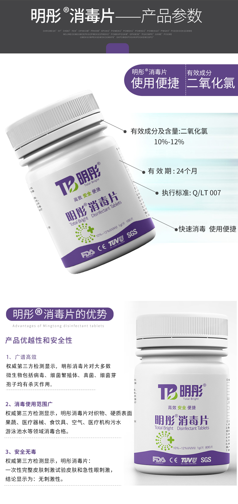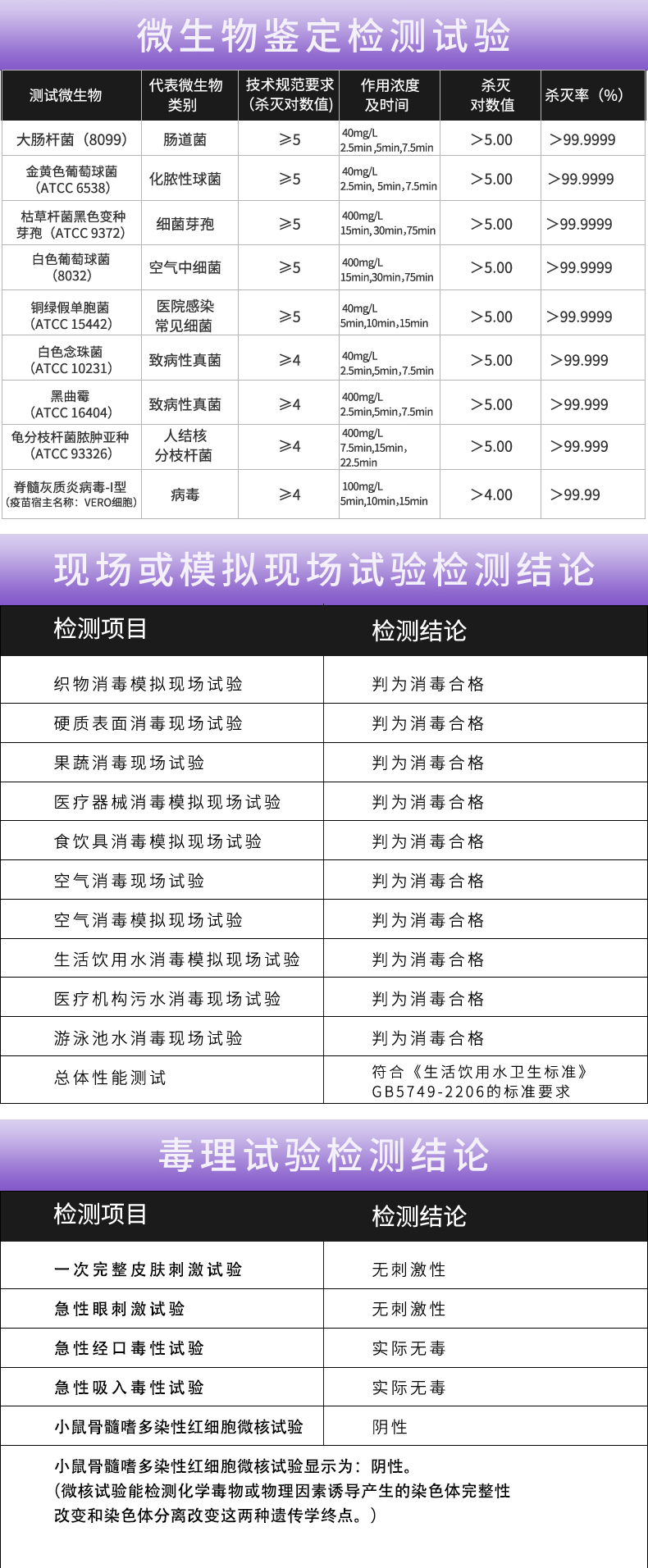 朗彤環境的消毒凈化用品包括各種不同規格的二氧化氯消毒劑等,上市消毒產品均進行了權威機構的全套檢測和消毒產品備案。